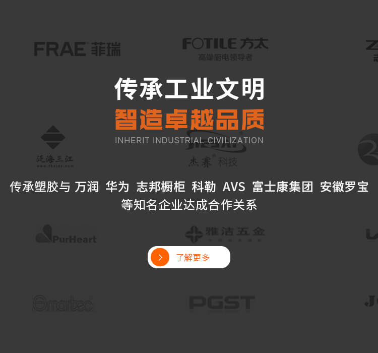 東莞傳承塑膠電子有限公司創(chuàng)立于2008年,位于世界制造業(yè)名城廣東省東莞市。以傳承工業(yè)文明 ,智造卓越品質為已任。經過十余年發(fā)展沉淀致力于打造為塑膠標準件行業(yè)的優(yōu)秀標桿企業(yè)。現有職員50余人,業(yè)務遍及60多個國家和地區,服務多家知名企業(yè),如:科勒華為、歐司朗 、方太、中國建筑工程公司、AVS等。 公司主營產品有塑料膨脹管,塑料螺絲保護帽,配線器材等類產品。經過十余年的研發(fā)創(chuàng)新與管理實踐,在渠道供應鏈,產品設計,生產管理方面具備較高專業(yè)的技能及大客戶服務能力。截至2020年底,累計申請有產品專利三十余項,能根據客戶要求開發(fā)模具及定做非標產品,產品符合環(huán)保認證,UL阻燃認證,抗老化UV認證等。 公司目前已成為國內外多家知名企業(yè)的長期合作伙伴,我們秉承“客戶第一,誠信 ,創(chuàng)新,合作共贏”的經營理念,愿與您攜手共同打造更加優(yōu)質的產品與服務。